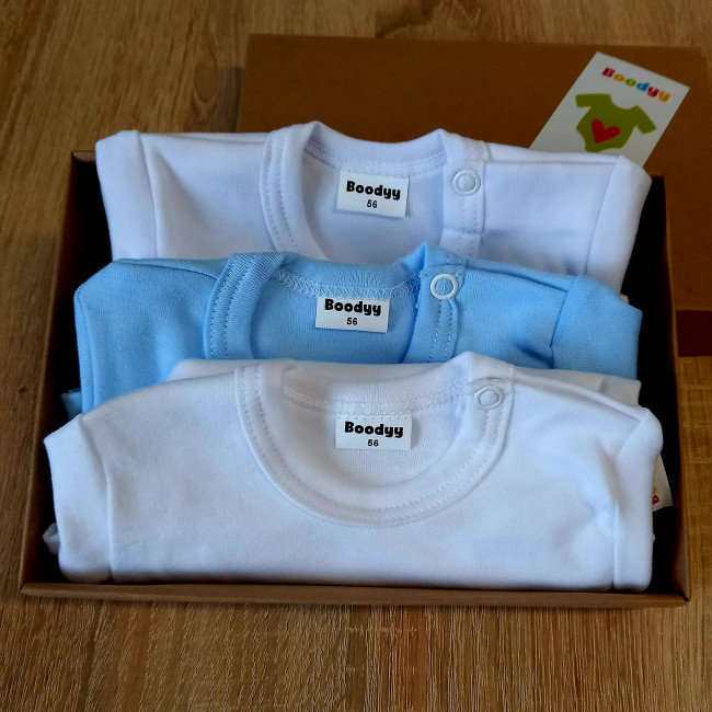Body hosszú ujjú, fehér, kék, 3db