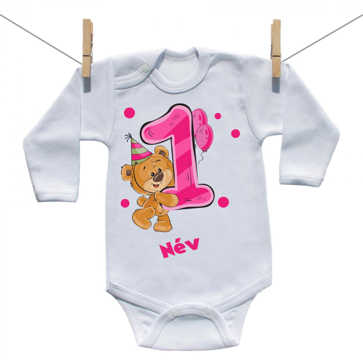 Hosszú ujjú body 1 éves vagyok mackóval lányoknak