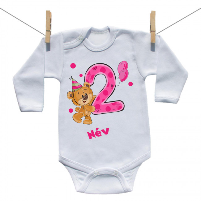 Hosszú ujjú body 2 éves vagyok mackóval lányoknak