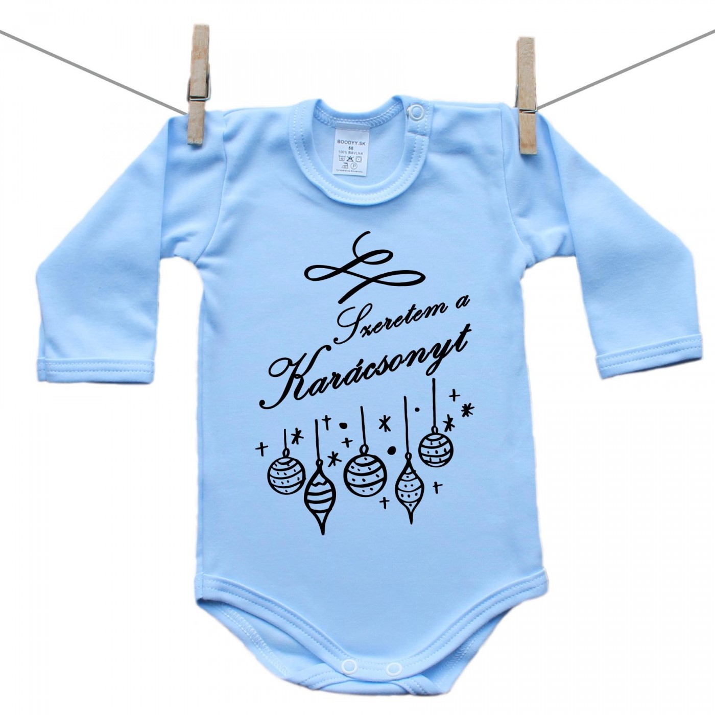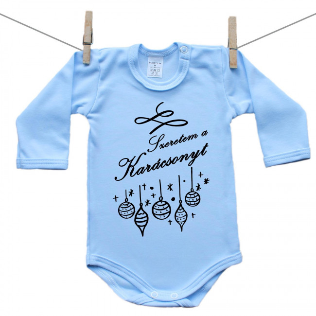 Hosszú ujjú body (kék) Szeretem a Karácsonyt