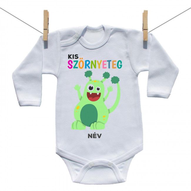 Hosszú ujjú body Kis szörnyeteg - zöld (a baba nevével)