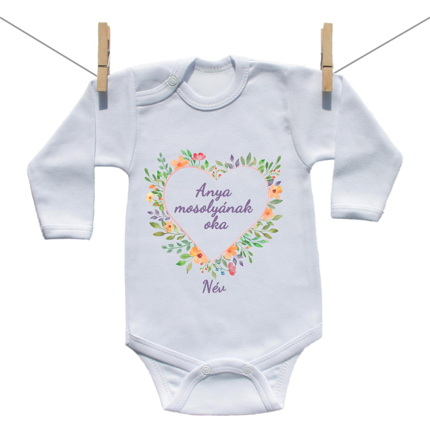 Ez a bájos "Anya mosolyának oka" hosszu ujjú body minden pillanatot bearanyoz, és a legédesebb ajándék a legkisebbeknek.