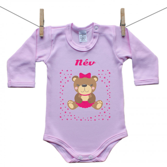 Rózsaszín hosszú ujjú body mackóval lányoknak