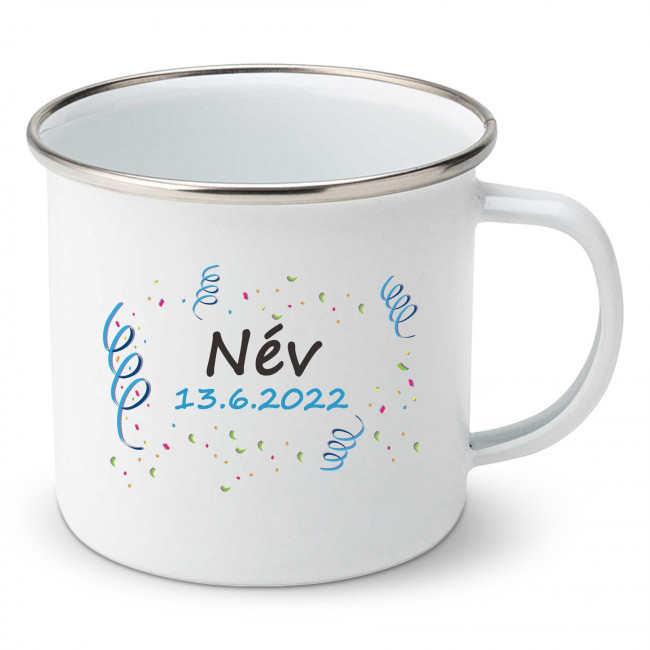 Zománc bögre A baba nevével és dátumával (Fiú)