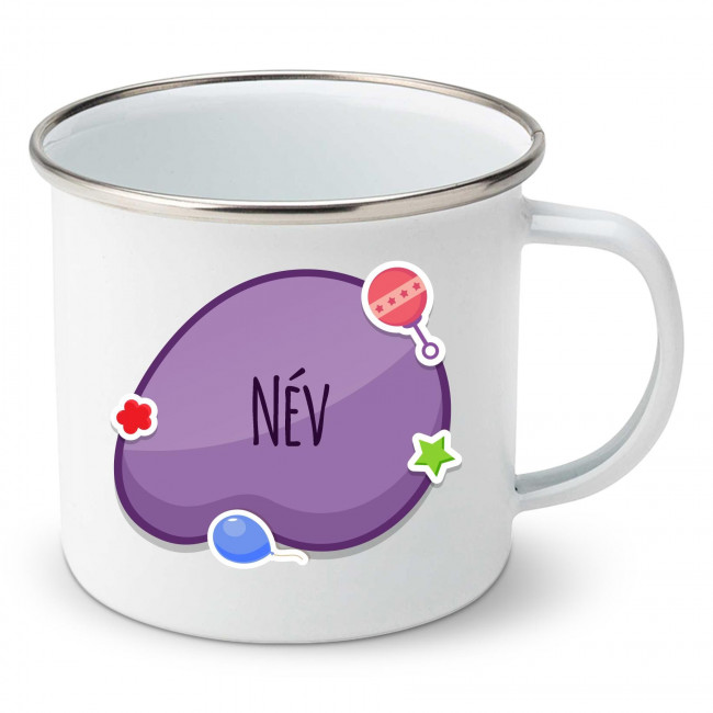 Zománc bögre Lila buborék (a baba nevével)