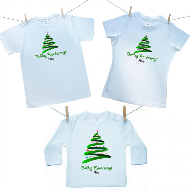 Családi szett (hosszú ujjú póló) Boldog Karácsonyt (névvel)