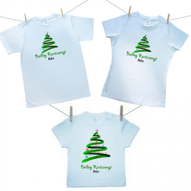 Családi szett (rövid ujjú póló) Boldog Karácsonyt (névvel)
