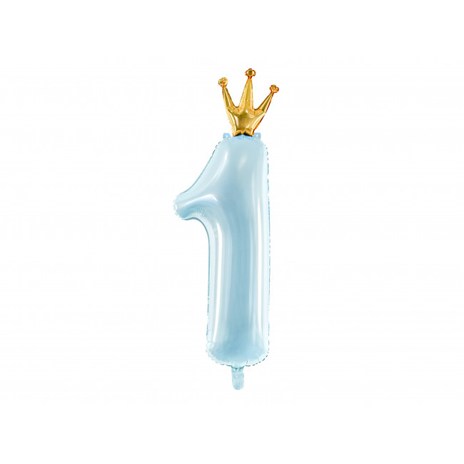 Ez az elegáns, pasztell égkék színű, arany koronával díszített fólia lufi a dekoráció felejthetetlen részévé válik. Ideális az első születésnap, a babaváró buli vagy bármely más jelentős első mérföldkő megünneplésére a családjában. Méretének köszönhetően a tér kihagyhatatlan domináns eleme és nagyszerű kiegészítője lesz a fotóknak.