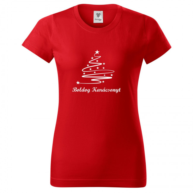 Női póló (Piros) Boldog Karácsonyt - Karácsonyfa