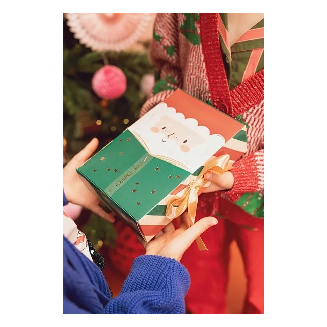 Varázsoljon mosolyt szerettei arcára ezzel a bájos karácsonyi ajándékdobozal, amely elválaszthatatlan karácsonyi mintájával és klasszikus vörös-zöld színével hódít. Az arany masni a doboznak azt a különleges stílust adja, amire szüksége van.