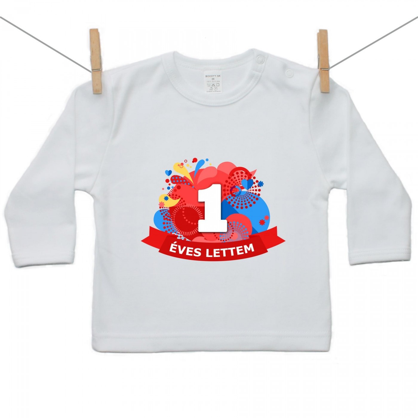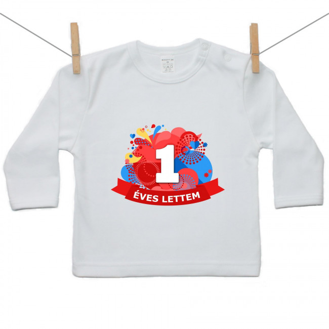 Gyerek póló (Hosszú ujjú) 1 éves lettem - piros
