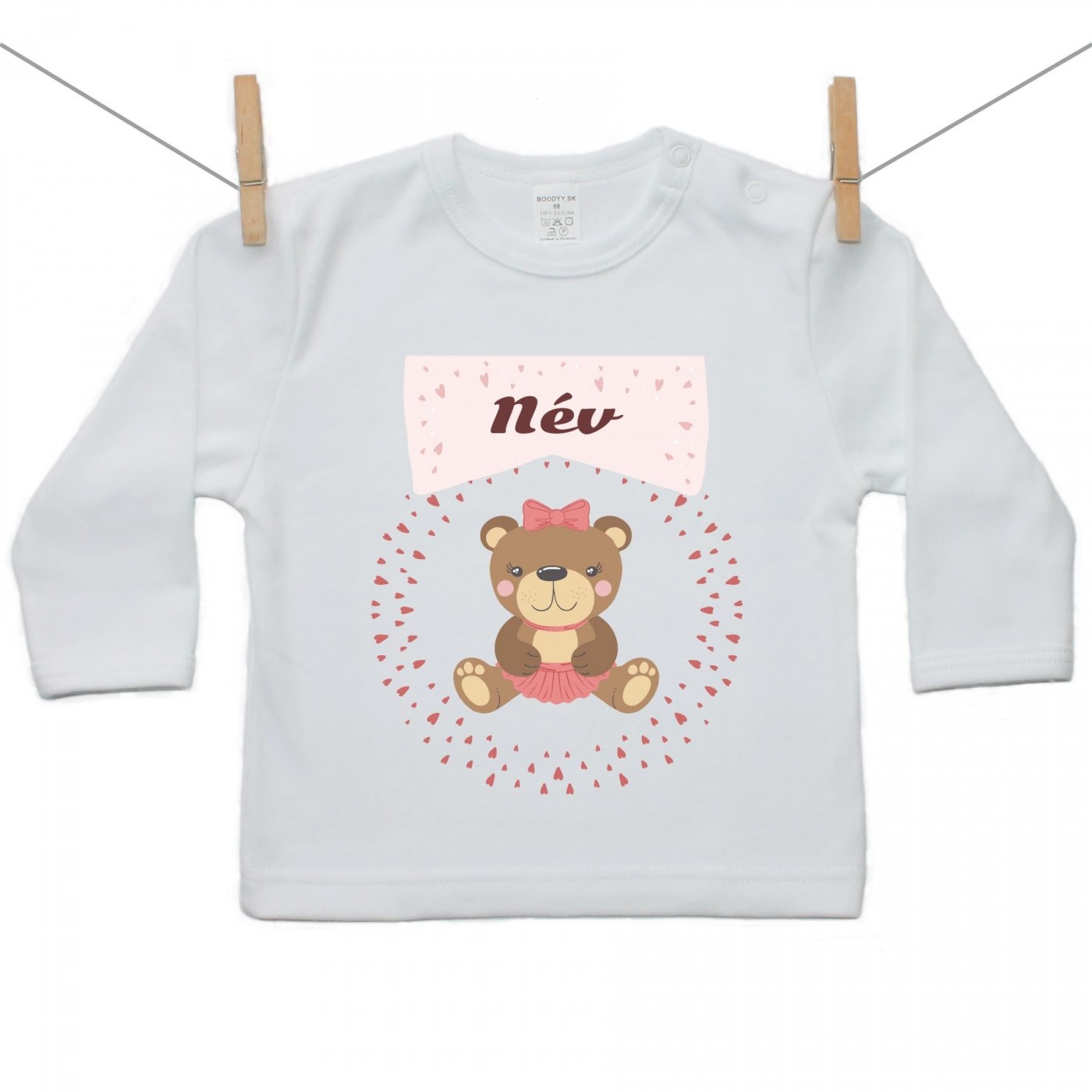 Gyerek póló (Hosszú ujjú) Maci - Lány (a baba nevével)