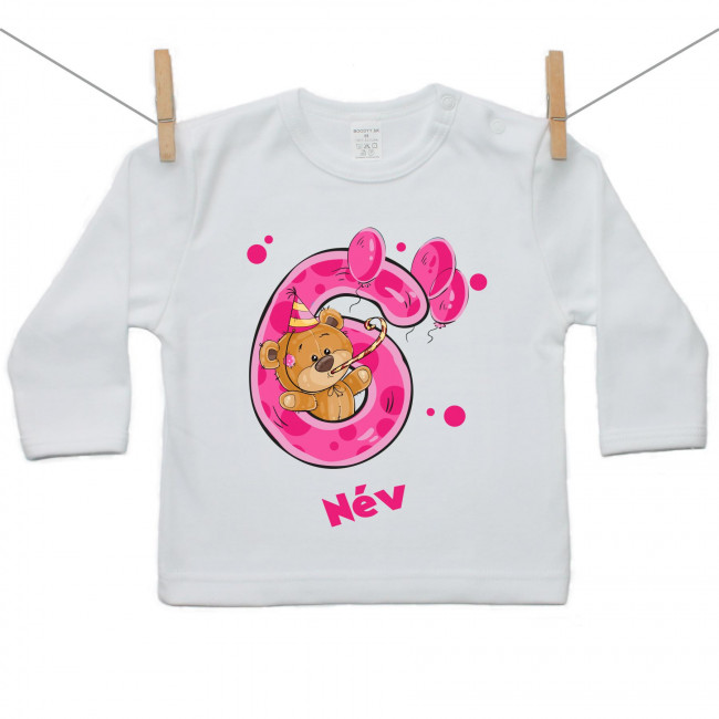 Hosszú ujjú póló 6 éves vagyok mackóval lányoknak
