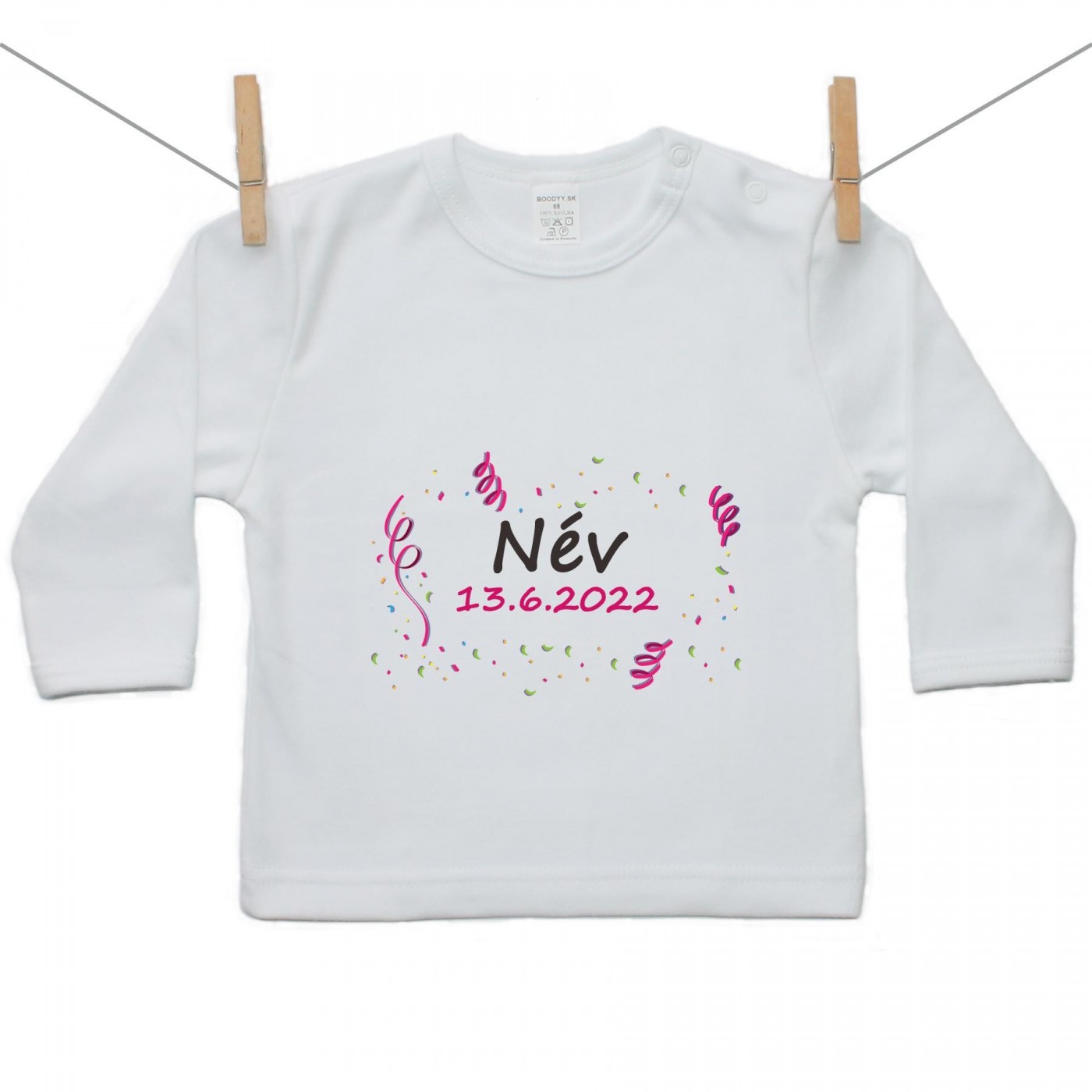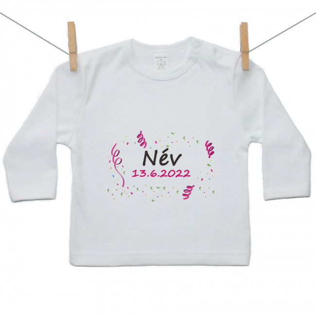 Hosszú ujjú póló A baba nevével és dátumával (Lány)