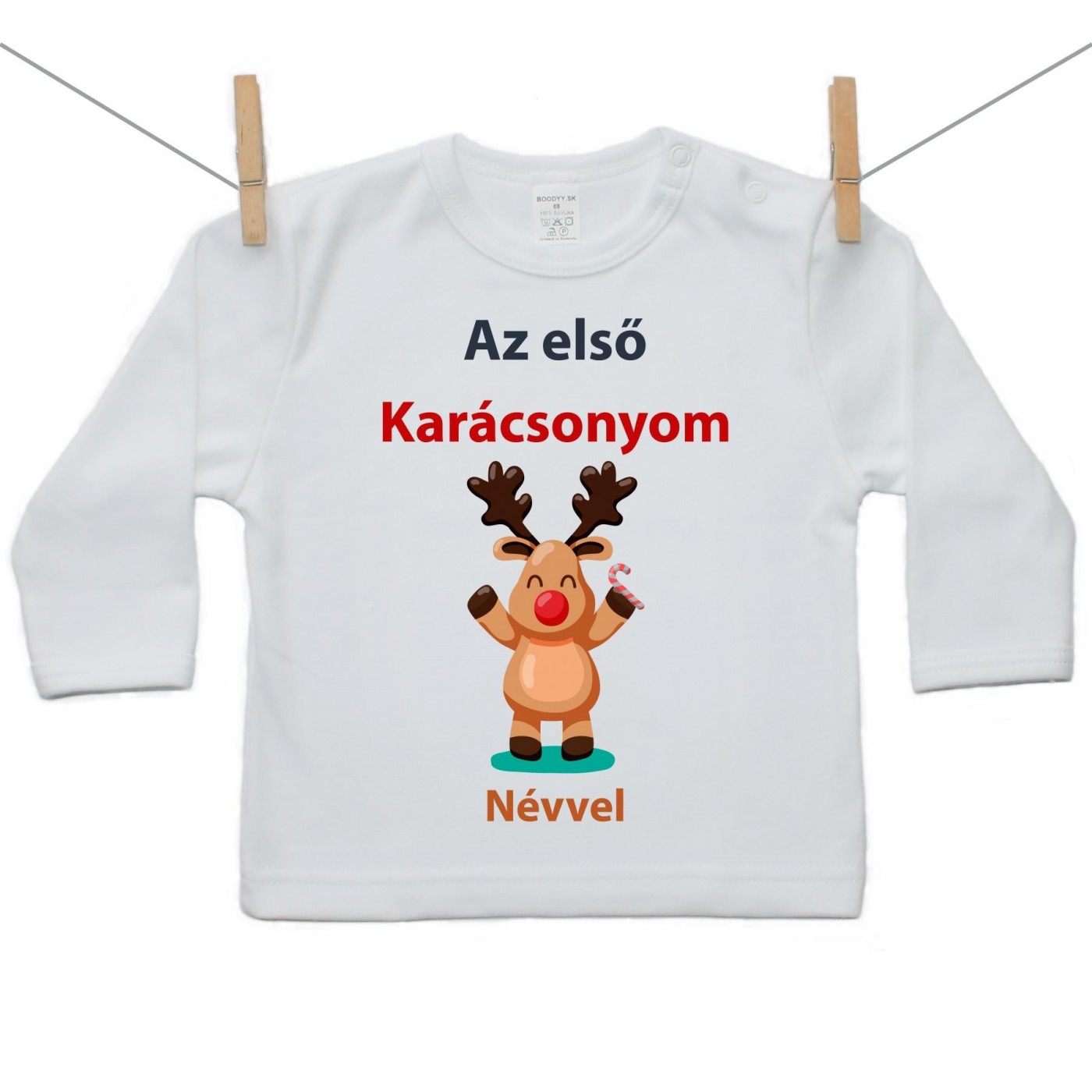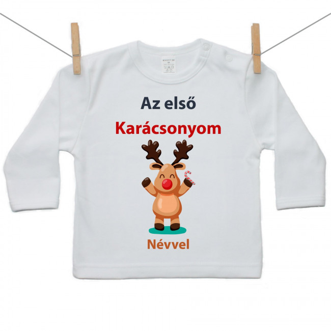 Hosszú ujjú póló Az első Karácsonyom (névvel)