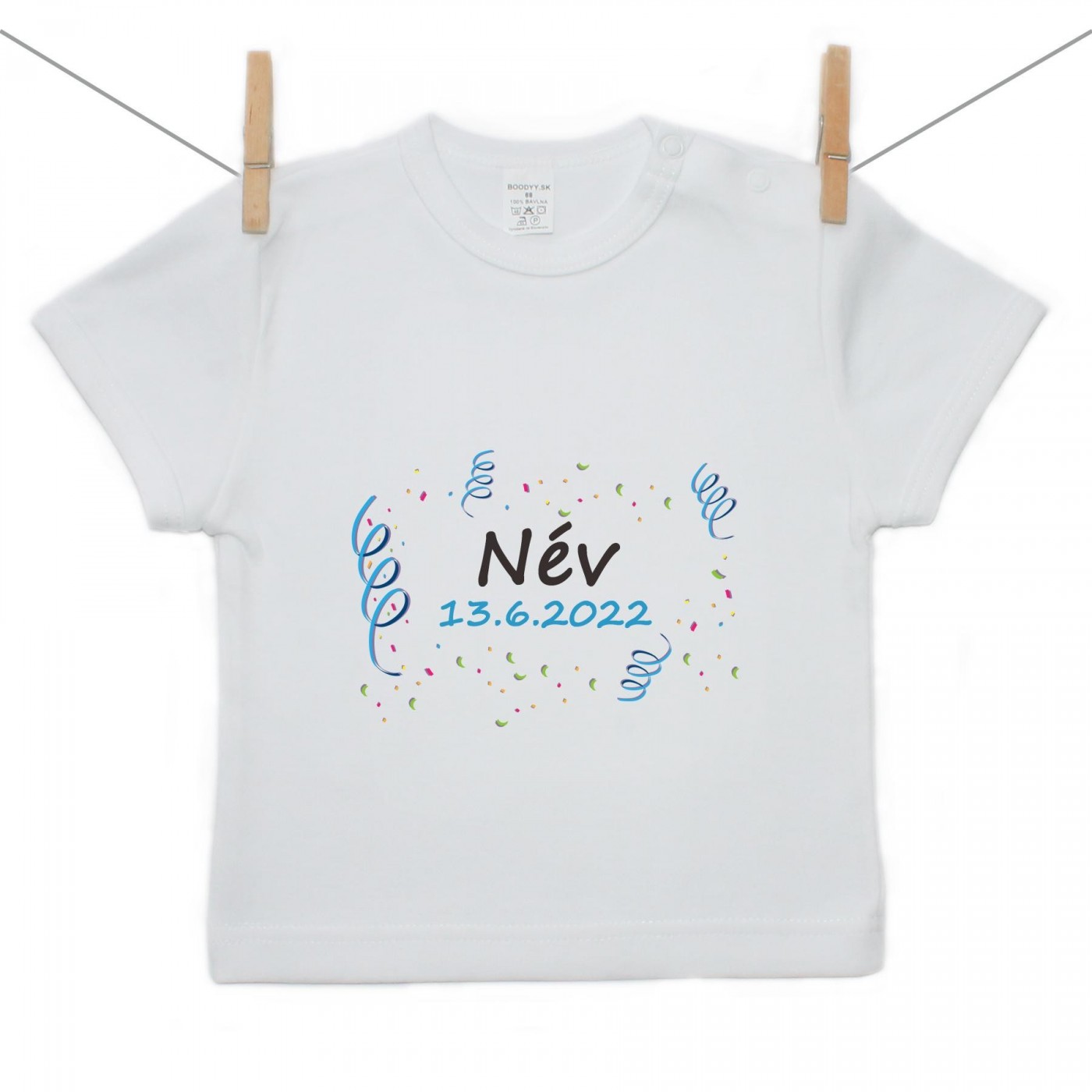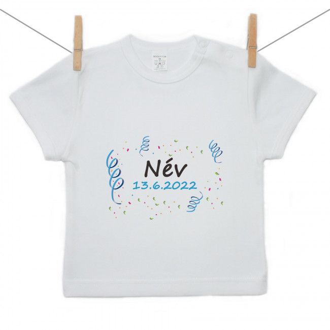 Rövid ujjú póló A baba nevével és dátumával (Fiú)