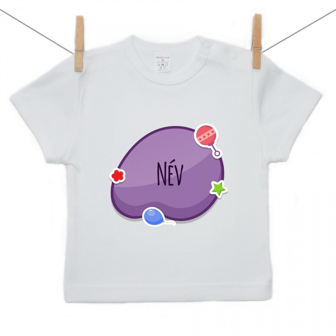 Rövid ujjú póló Lila buborék (a baba nevével)