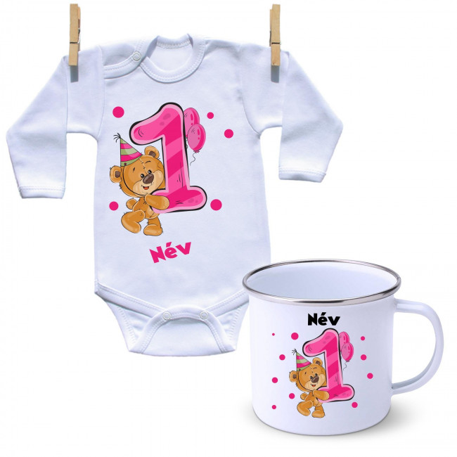 Szett Szett - Első Szülinap - maci - lány (saját névvel)