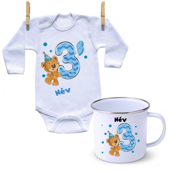 Szett Szett - Harmadik Szülinap - maci - fiú (saját névvel)