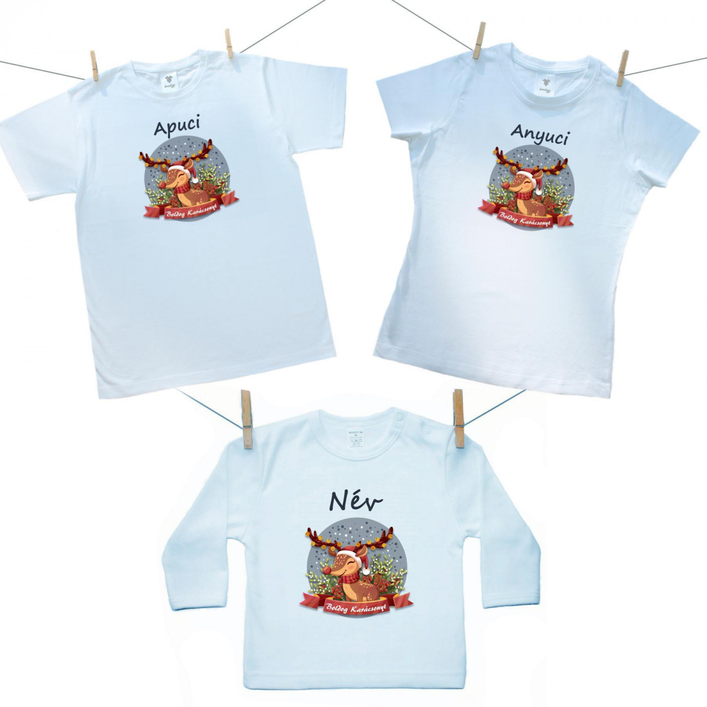 Családi szett (hosszú ujjú póló) Boldog Karácsonyt