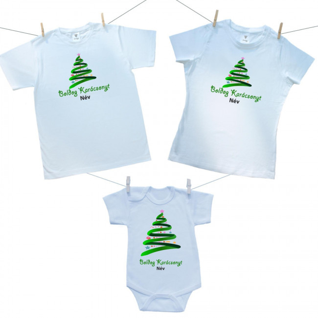 Családi szett (rövid ujjú body) Boldog Karácsonyt (névvel)