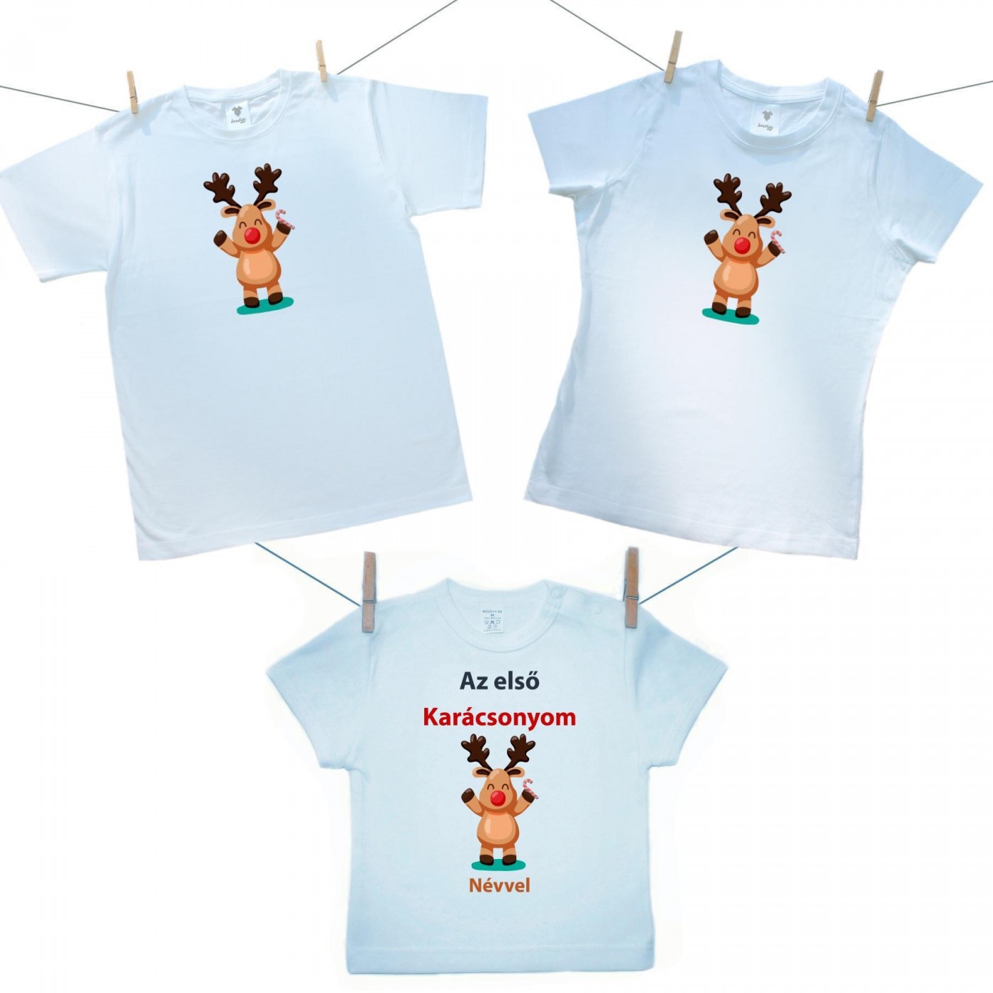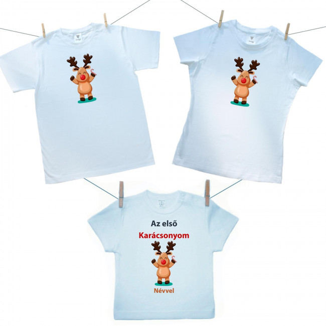 Családi szett (rövid ujjú póló) Az első Karácsonyom (névvel)