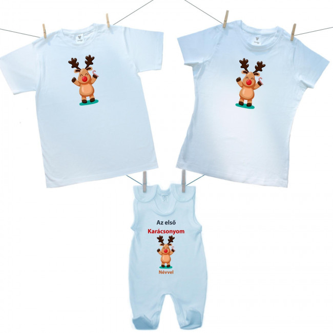 Családi szett (rugdalózó) Az első Karácsonyom (névvel)