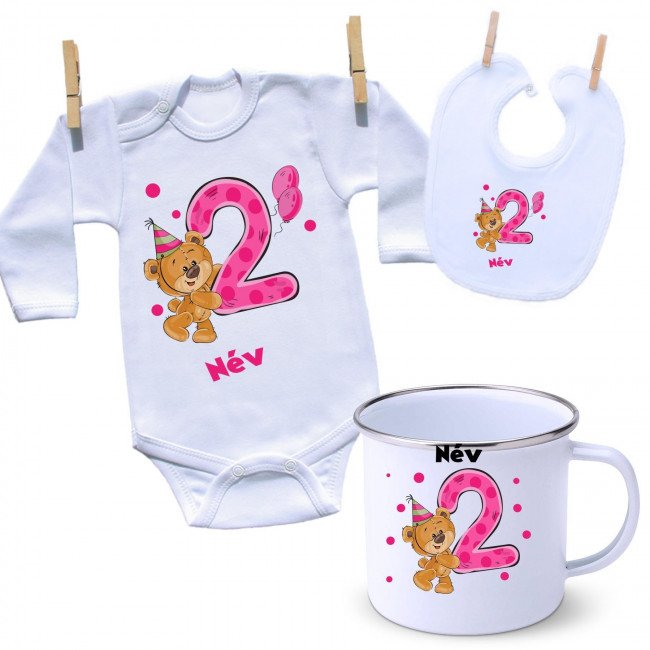 Szett Szett - Második Szülinap - maci - lány (saját névvel)